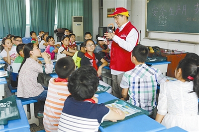 暑期将至,浙江富阳区供电公司党员服务队老队员马国泉和队员们成立了一个“安全用电讲师团”,走进富阳的多所小学和幼儿园,向同学们宣传安全用电的知识。图为浙江富阳区第五小学的阶梯教室里,马国泉师傅为学生讲解用电知识。(汪晓池)