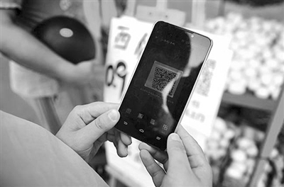 6月23日,安徽合肥南一环路一瓜摊,顾客扫描二维码买瓜。据悉,现年30岁的肥东小伙干根斗在卖瓜过程中发现“零钱太多,不好收拾,而且找零也麻烦。”于是灵机一动,贴出告示,鼓励顾客们通过微信扫码或者支付宝转账的方式支付买瓜钱。他在街头用这种新颖的方式卖掉了一万多斤的西瓜。