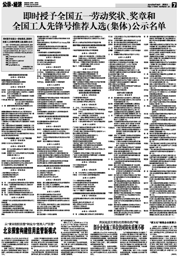 为进一步听取群众意见,接受社会监督,现将2015年即时授予全国五一劳动奖状、奖章和全国工人先锋号推荐人选(集体)予以公示。凡对公示人选(集体)持有异议者,请于2015年7月2日17时前向全国总工会经济技术部反映(提倡实名反映问题)。