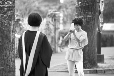 数据显示:今年大学毕业生人数将达到749万,比去年又增加22万,再创历史新高。他们怀着对母校的感恩和对未来的美好憧憬,踏上新的人生旅程。毕业生们在离开学校,即将开创人生新阶段的时刻,和亲友们纷纷拿起相机,记录下在母校的最后时光,留下青春的美好记忆 。 图为一位母亲为女儿拍学士服照 。 本报实习生 王伟伟 摄
