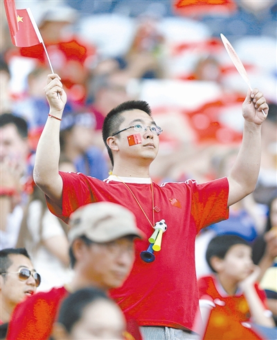 球迷在赛前为中国女足加油。新华社记者 秦朗 摄