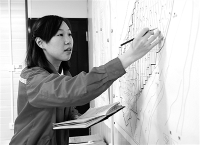 葛兰所在的气田开发部相当于涪陵页岩气公司的“大脑”和“中枢”,气田的规划、部署、指令都由这里发出。刚到气田,葛兰就参与到试验井组的井眼轨迹调整工作中,具体负责焦页13-2HF的井眼轨迹调整。井眼轨迹调整需要在钻头进入水平段之前预测气层位置,在2000米左右的地层深处,让钻头按照你的指令,在主力气层中穿行,是高难度技术。为了做好方案,葛兰没日没夜地“泡”在海量数据中,牢牢记住各项地质参数,对比标志井,经过15天的煎熬,终于圆满完成焦页13-2HF井的井眼轨迹调整工作。