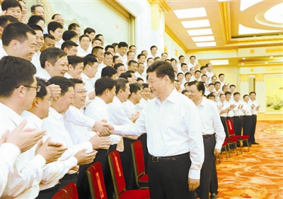6月30日,党和国家领导人习近平、刘云山等在北京人民大会堂会见全国优秀县委书记。 新华社记者 兰红光 摄