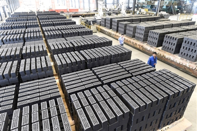 在山西省大同市塔山循环经济园区,工人用煤矸石制砖(6月10日摄)。这样不仅有效解决了采煤造成的环境污染,也节省了成本节约了能源。