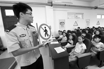 6月30日,河北霸州的交警在霸州第二小学为小学生讲解交通安全知识。