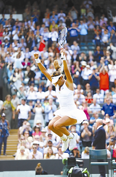 当地时间7月7日,穆古拉扎在比赛后庆祝。