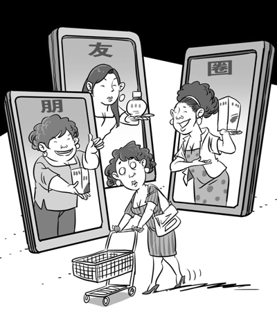 不知从何时起,微信朋友圈变成了商业圈,上面的好友摇身一变,成了微商,霸占朋友圈关注度、强制推送产品广告,令人不堪其扰。不可否认,惊人的传播效应之下,微信确实是个诱人的广告平台,只是好心推销也好,有意杀熟也罢,微商的营销方式和产品质量都值得商榷,而纯粹的友情也伴随渐浓的商业味道走向异化,到头来伤了感情、断了交情,产品销路也没能打开,何苦呢?□赵春青/图 韫超/文