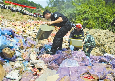 7月8日,中越边境云南省红河哈尼族彝族自治州河口县集中销毁查获的670余吨牛肉、牛肚、鸡脚、鸡翅等走私冻品,这些“僵尸肉”从越南走私入境,原产地不明,抽查的样品没有中文标识也没有经过任何的检验检疫,经检验冰冻时间最长的已达数年,有的已变质发臭。