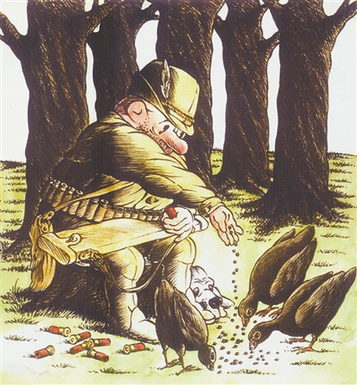 偷猎者撒米将飞禽喂得肥肥胖胖,看似一片慈善爱怜心肠。可是,明眼人不费吹灰之心便看透了施舍背后的歹毒伎俩。科索布金
