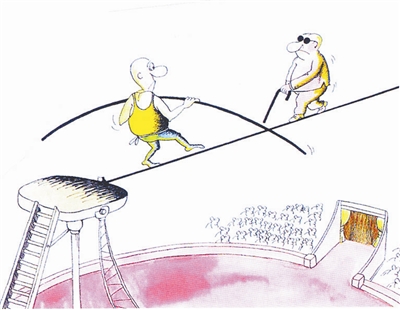 盲人与杂技演员在钢丝绳上狭路相逢,双方各不相让执意向前……我以为,还是明眼人退后一步吧,“天地”方能更宽!杜波夫斯基