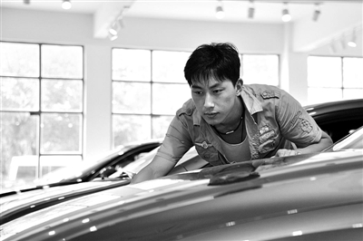 7月12日,江苏省常州市的二手车鉴定评估师培训班学员潘正男学习油漆鉴定评估。