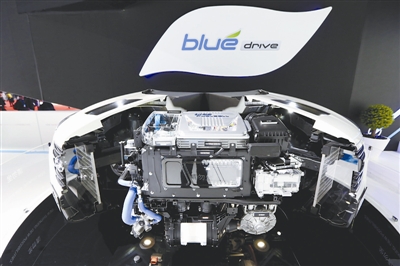 在今年第十六届上海国际汽车展上展出的新能源汽车动力电池。