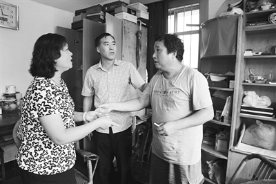 7月15日,浙江宁波市总工会和江北区总工会领导一行走进家门慰问受灾职工。