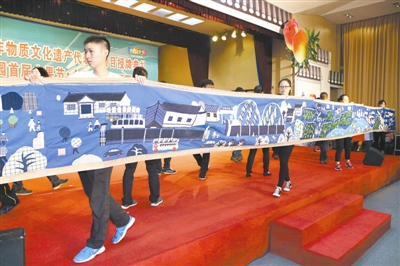 图为土布贴画百米长卷展示。金山区吕巷土布文化此次入选了上海非遗项目。