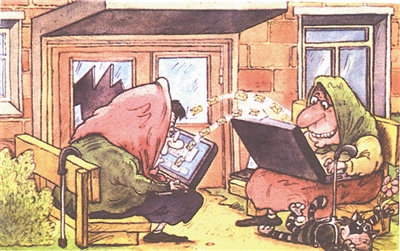 电脑进入寻常百姓家,它为生活带来种种方便,也给人们的交流设了万千“樊篱”。您看,老夫妇谈话都懒得开口啦!