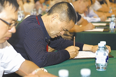 全国劳模袁超在农民工形势与政策报告会上认真做笔记,以了解国家最新的农民工政策。