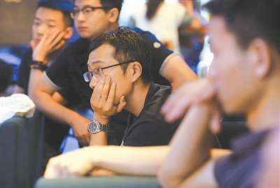旁边,一位长头发的男生抱着靠枕偎在椅子里休息,桌上放着几个洗干净的桃子和一大桶矿泉水,这是他的午餐。走廊尽头是个大地铺,地铺上摆着围棋和象棋,两个人半躺着对着电脑讨论方案……
