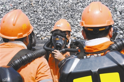 7月22日,国家矿山应急救援队救援人员检查装备,准备下井。