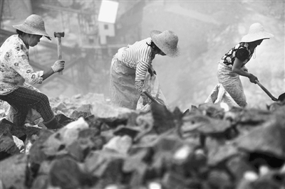 “以前钨矿价格好,特别是农闲季节时,来的人特别多,现在钨的价格掉了近一半,捡的人很少了,一个月能捡2000元就已经很不错了。” 来自资兴市山区的李大姐说。她皮肤被晒得黝黑,脸上布满灰尘,在这捡烤砂10余年来,她每天都要走两个小时的路,再乘车到达矿区。 郭立亮 摄/CFP