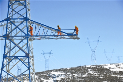 国家电网员工奋战雪域高原 (杨林 摄 )