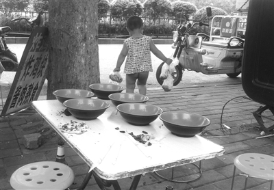 刘振峰已在舜华北路摆摊两年,大儿子上了初中,为了全家生计,刘振峰和妻子一人守一个小吃摊,大儿子和妻子忙一个摊位,小儿子和他在另一个摊位。虽然孩子小,但是家里没钱专门请人照顾他,只能让他跟着出摊。说起小儿子的懂事,刘振峰满脸笑容地说:“他很喜欢收碗、扔垃圾,不让他干,他还不愿意呢。”崔艳红/CFP