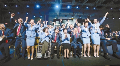 7月31日,在国际奥委会第128次全会上,北京携手张家口获得2022年冬奥会举办权。北京申冬奥代表团成员庆祝获得举办权。 新华社记者 王丽莉 摄