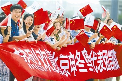 8月2日下午,北京申冬奥代表团经历6个多小时的飞行,回到了首都北京。7月31日,北京携手张家口在马来西亚吉隆坡获得了2022年冬奥会的举办权。 图为北京市民自发到机场迎接代表团。王钰谊 摄/CFP