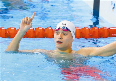 当日,在俄罗斯喀山进行的第16届游泳世锦赛男子200自由泳预赛中,中国选手孙杨以1分46秒的成绩排名第一,晋级半决赛。