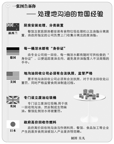江苏连云港市新浦区曾推广泔水油分离器 将地沟油变废为宝,将餐厨中的废弃油脂全部回收,统一运至油脂化工企业进行处理,最终变为生物柴油,有效杜绝了地沟油流入居民餐桌。耿玉和/CFP
