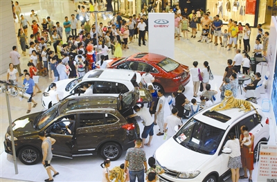 进入炎炎夏日,不少汽车销售公司打起了“清凉牌”,将车展促销活动办进了大型商场室内,便于前来商场的市民能在纳凉购物的间隙了解新车性能,以争夺潜在目标客户和市场份额。图为江苏常州市民在一家商场的室内车展现场参观选车。王启明/CFP