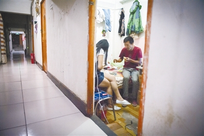 晚上下班后,周立文将电动车安放好,扛着25公斤重的电瓶回到那不足15平方米的出租房,妻子早已把饭菜备好等他一同进餐。