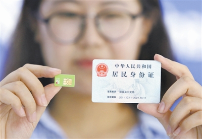 8月8日,山东省临沂市郯城县一家手机经营店工作人员展示身份证和手机卡。 从9月1日起,电信企业在通过各类实体营销渠道销售手机卡时,将要求用户出示本人身份证件,并当场在第二代身份证读卡器上进行验证。这将为电话实名制增加技术和设备保障。 新华社发(张春雷 摄)