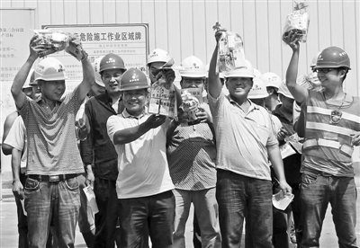 8月11日,益娄高速公路第二合同段职工高兴地领到工会发放的防暑降温药品和《员工职业防病手册》。当日,湖南省总工会开展“送清凉”活动,工会干部来到益娄高速公路第二合同段施工一线,看望慰问劳动竞赛中的建设者。