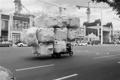 8月5日,湖南常德市,一辆三轮车拖着超高超长的货物前行。本身不大的三轮车成了一辆“货车”,过往车辆驾驶人惊呼“马路杂技”,路口执勤交警当即将其拦截对其行为进行了查处。
