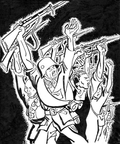 先生和战友们在抗战时期用画笔为中国漫画史写下了光荣的一页。后来他曾回忆道:“回想当年我们在警报频频中闭窗秉烛作画的情景,至今犹觉热血奔涌……我这个漫画兵从1937年画到1945年,经历了抗战的全过程,武器就是一支画笔。现在回过头来看看当年的作品,虽不成熟,笔底感情却是真挚的。激于民族的义愤,我们曾以苦为乐,不负祖国的托付,尽了自己的职责。”缪印堂