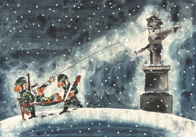 残雪哀鸣,硝烟弥漫。从战场上败下阵来的伤兵,使出浑身最后一把力气,将一个雪团儿投掷出去,而目标正是他们昔日曾经追随并为之献出胳膊献出腿脚的最高指挥官——这场战争的发动者。这一刻,他的身体伤残了,他的内心觉悟了。
