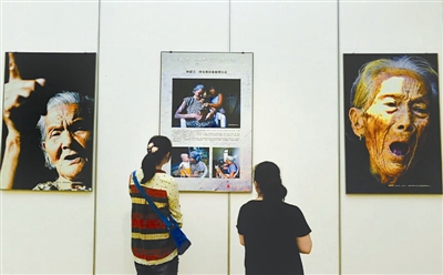 8月18日,浙江省杭州市,参观者在观看慰安妇的相关图片。
