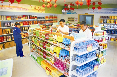 图为督查组人员正在检查加油站便利店在售商品质量。徐杨 摄
