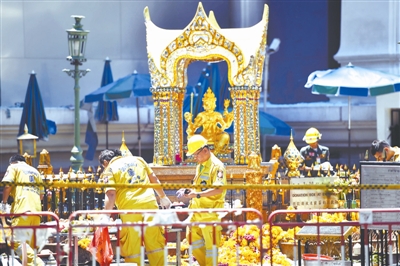 另据泰媒报道,在17日爆炸中轻微受损的四面佛像已修复完毕,并于当地时间19日8时起重新对外开放。