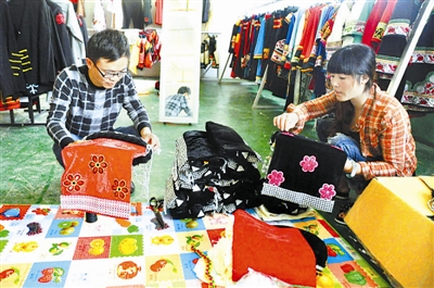 2012年,他们在威宁县城租了一套民房开始创业。在夫妻俩的精心经营下,他们的民族服饰赢得越来越多的客户认可,生意越做越红火。这对敢闯、敢拼的夫妻创客,既弘扬了传统民族文化,又实现了自己的创业梦想。新华社发(杨文斌 摄)