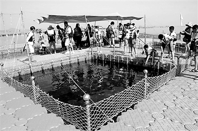 8月23日,山东省威海市,入秋以来,荣成市“海洋牧场”游继续升温。近年来,荣成市围绕10大海湾,整合现有海上养殖资源,完善旅游配套设施,规划建设了10处、确权海域面积不低于5000亩的海上休闲观光采摘园区,深得游客青睐。林海珍/CFP