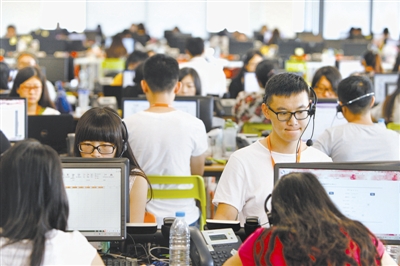 8月28日,天津滨海开发区MSD B1座21层,猎聘网的120多名员工正在工作。