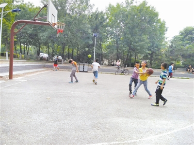 在北京市朝阳区四环路附近,居民在一处简易篮球场活动。本报记者 甘皙 摄