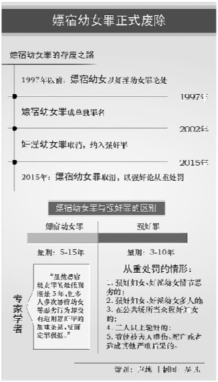 近年来,这场关于嫖宿幼女罪罪名存废的拉锯战并不轻松。此前的刑法修正案(九)草案在一审、二审时,都没有提及要删去该条款。现在,那些多年来废除此罪的呼声,终于得到了最终回音。