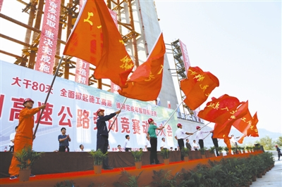 当然,这样的场景还只是新千公里劳动竞赛中的一个缩影,据了解,过去一年多时间里,重庆高速集团就有11个新千公里高速公路在建项目以及渝邻改线、珊瑚立交等两个代建项目全部开展了劳动竞赛,做到了竞赛活动的全覆盖——建管中心启动了黔恩、渝邻改线、珊瑚立交等在建项目的劳动竞赛,开展了黔恩项目“百日攻坚”劳动竞赛推进大会;江綦、通粤、忠都、渝广梁忠等多个单位分别组织了“大干两百天”“百日攻坚”等形式多样、富有成效的竞赛活动……