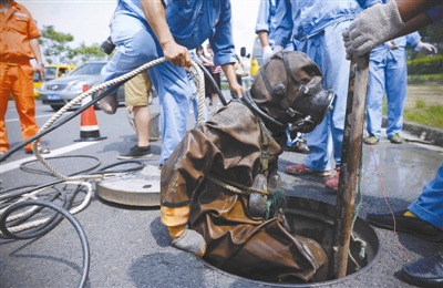 统计数据显示,截至2014年底,上海有20971.96公里的地下排水管道和1077座排水泵站,任何一处管道堵塞都会造成污水冒溢、道路积水,任何一座排水泵站运转异常都将造成区域排水困难,“蛙人”在这条“看不见的战线”上扮演着重要角色。