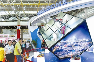 图为9月10日,观展者参观2015中阿博览会上海主题馆展出的轻工业产品。