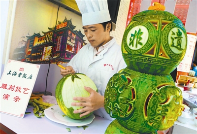 9月10日,上海老饭店的厨师在表演国家级非遗项目——上海老饭店制作技艺。