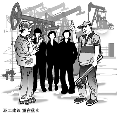 职工郭建华说,“去年,我的提议是加强我们后勤辅助单位的劳动保护工作。提议过后就没有了答复。今年我仍然提了这一条,原以为会和去年一样。没想到新一批的劳保用品很快就发到了我们手中。不仅如此,还把像我们油管厂的收送班组、场地标准化班组这样的艰苦岗位的工服配置,从两年一套改为了一年一套。彻底解决了这些岗位的劳保护具问题,这让我们这些普通职工对于职工代表‘巡实’制度有了更深刻的感受。”