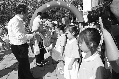 9月7日,北京市门头沟区军庄中心小学的师生,如期在新校舍中迎来开学第一课。该校原教学楼由简易的彩钢板搭建而成,存在坍塌、易燃等安全隐患,北京住总集团工程总承包部杨海啸青年突击队和四川仪陇劳务公司发扬“铁军”精神,仅用52天,一座理念先进、配套设施完备的二层教学楼拔地而起。师生们说,52天,是一种责任,更是一种厚爱。 李黄英 摄